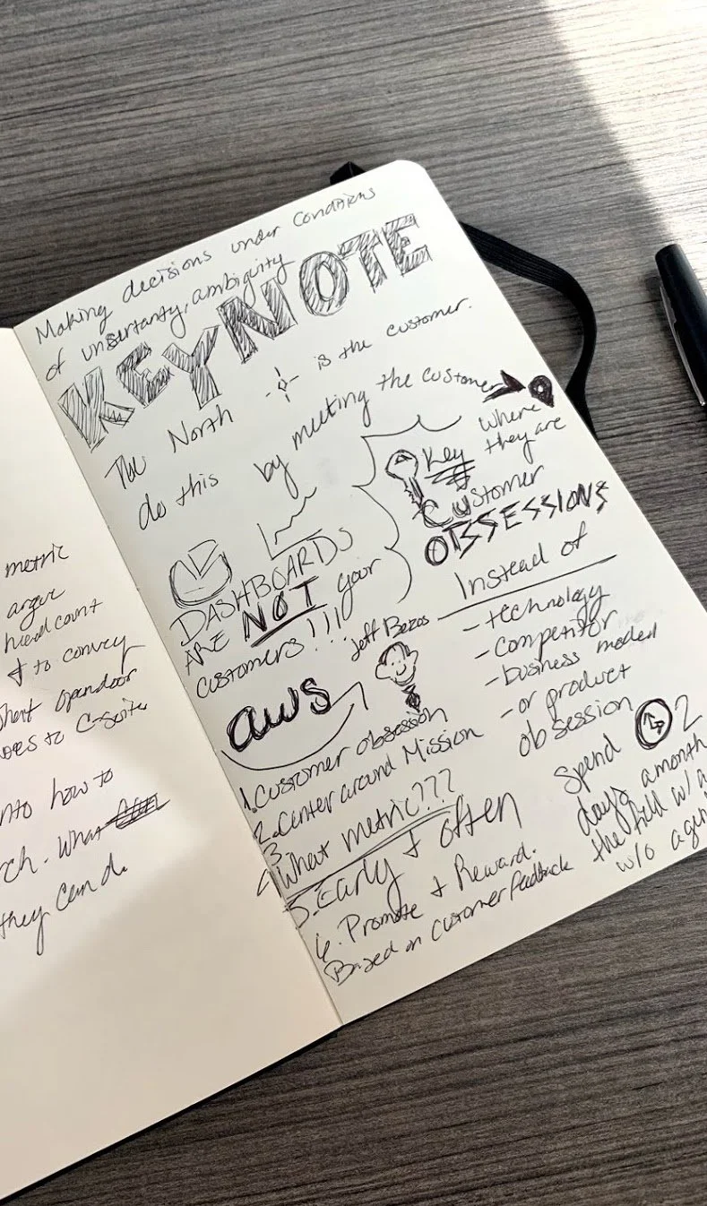 Finally, the closing Keynote by Tatyana Mamut, Head of Product / CPO, Nextdoor, was the most insightful and intriguing as she structured a heavy analogy as a group activity. Tatyana built a boat analogy with 7 Habits of Customer-Centric Companies she had adopted from Jeff Bezos’s business practices. We were to imagine our product team was setting sail on the ocean with a clear project path in mind. However, mishaps would appear at each point in the boat’s journey, such as pirates boarding the ship changing the direction and the goals. At one point, you’re nearing the end of the voyage, and your head engineer says the engine has broken down. You only have enough resources to repair the ship and delay the timeline or throw off half of the cargo initially intended to be delivered.