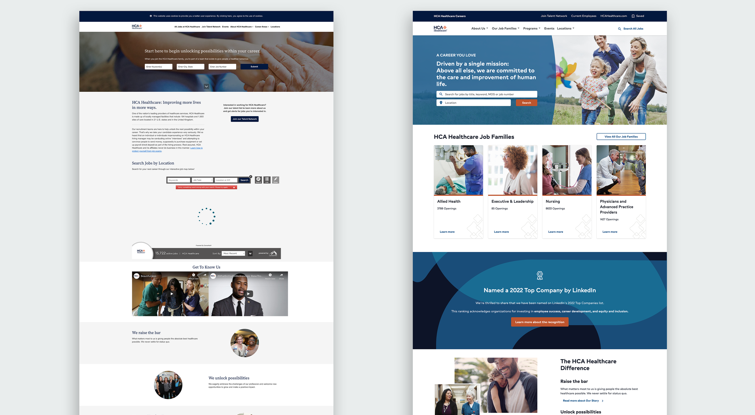 With nearly 800k visitors monthly and a high bounce rate, the HCA Healthcare global careers site wasn’t in for a quick makeover with our digital design system, Neutron. It needed a full overhaul. HR Recruitment Marketing contacted the UX Center of Excellence (UXCOE. That is my team, hola!) to revamp the experience from end to end.